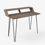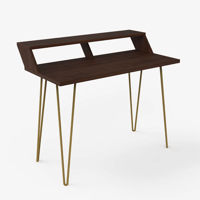 Bea is our compact wireless charging smart desk with stylish hair pin legs. Raised shelf for functionality. Available in 3 unique finishes to suit your home (Walnut veneer & gold metal leg / Oak veneer and charcoal metal leg / Lime-washed veneer and charcoal metal legs).